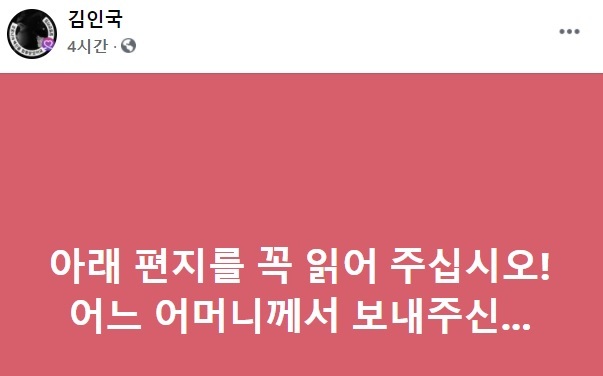 그는 “일단 아무도 없는 자리에서 혼자 조용히 읽어주시면 뜻이 더욱 간절하게 전해질 것”이라고 했다.