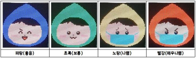 앞선 시민여론 청취 과정에서 풍무동의 한 주민은 “우리 아이들이 다니는 초등학교 앞에 노란색을 입은 미세먼지 신호등이 설치돼 안심할 수 있다”며 “친근한 캐릭터에 먼저 눈길이 가고, 야외활동 시에도 쉽게 미세먼지 농도 정보가 확인된다”고 호평했다.