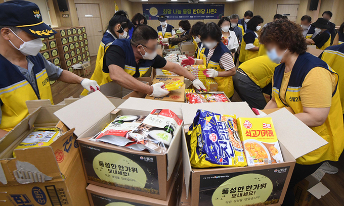 추석 명절 취약층 위한 선물 포장 입력 : 2021-09-11 01:00:00 수정 : 2021-09-10 20:31:36 서상배 선임기자 구글 네이버 유튜브 10일 서울 양천구 신월2동주민센터에서 열린 ‘희망, 나눔, 동행 한마당 시즌2’에 참석한 신월2동 나눔행사 추진위원회 관계자들이 추석을 앞두고 취약계층 1000여가구에 전달할 선물세트를 포장하고 있다. - 기자 Copyright ⓒ 세계일보. 무단 전재 및 재배포 금지 세계일보 -