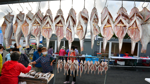 14일 경북 영덕군 영덕읍 옛 야성초등학교 부지에 개설된 임시 영덕시장에서 시민들이 추석 제수용품을 구입하고 있다. 영덕시장은 지난 4일 대형화재로 점포 78곳 중 48곳이 전소되는 피해를 입었다.