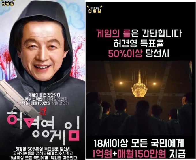이 같은 글과 함께 허 명예대표는 ‘오징어게임’의 포스터를 패러디한 게시물 여럿도 첨부했다.