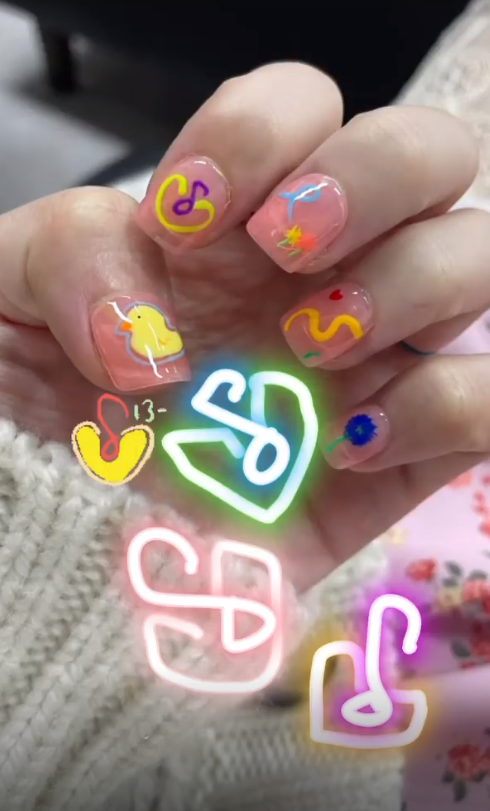 그의 손톱에는 병아리 그림을 비롯해 데뷔 13주년을 기념한 숫자 ‘13’이 그려져 있다.