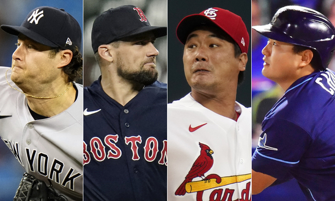 게릿 콜(왼쪽부터), 이볼디, 김광현, 최지만