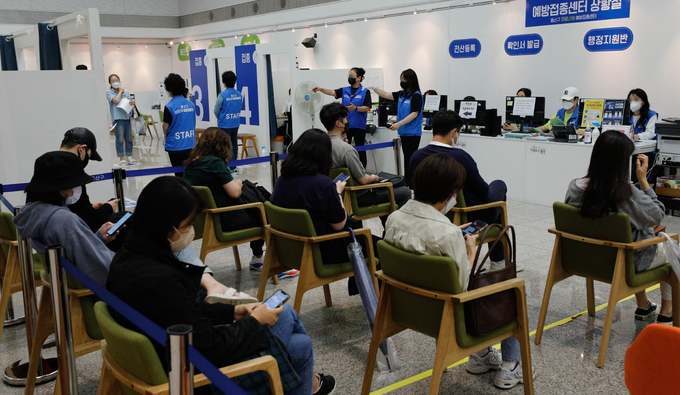 지난 8일 서울 용산구청에 마련된 코로나19예방접종센터에서 백신을 맞은 시민들이 이상반응 모니터링을 하고 있다.  뉴스1