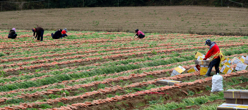 가을이 완연한 10일 강원 평창군 대관령 한 밭에서 농민들이 당근을 수확하고 있다.