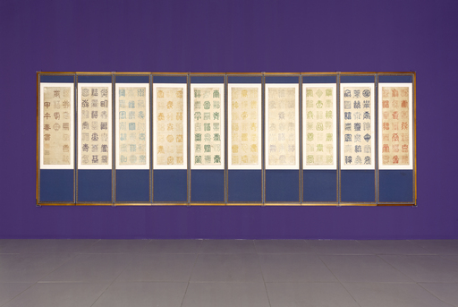 전시장에 들어서면 ‘백수백복도’가 먼저 관람객을 맞는다. 복(福)자와 수(壽)자를 번걸아 100번 반복돼 있는 구성인 작품이다. 오래 살고 복을 누리라는 의미를 담고 있다.