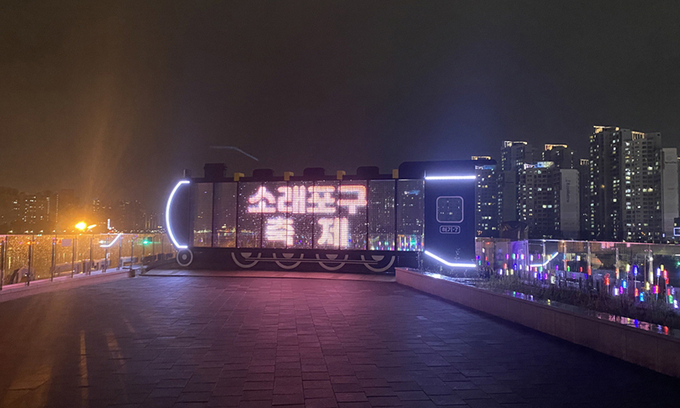 남동구는 개막을 앞두고 최근 전통어시장 옥상에 협궤 증기기관차를 형상화한 미디어월을 설치했다. 소래포구 관광벨트 구축 사업 일환으로 지역상권 활성화 및 야간경관 명소화를 위해 추진된 것이다.