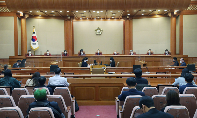 다수 의견은 아울러 “탄핵 결정으로 부수적으로 공직 취임 제한 효력이 따라 나오지만 해당 공직에 있지 않은 사람에 대해서도 할 수 있도록 유추해석하는 건 공무원 임명자격을 부당하게 박탈하는 것”이라고 지적했다. 이런 다수 의견에는 김명수 대법원장이 지명한 이은애 재판관과 문재인 대통령이 지명한 이미선 재판관도 합류했다. 다만 이미선 재판관은 각하 판단을 내리면서도 탄핵을 할 수 없는 이유가 현행법상 제한에 따른 것이라고 봤다.