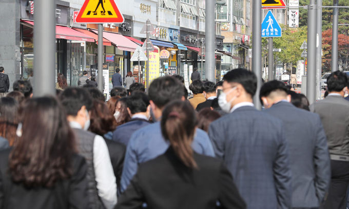 1일 세종시 정부세종청사 공무원들이 점심 식사를 위해 외부식당 등으로 이동하고 있다. 연합뉴스