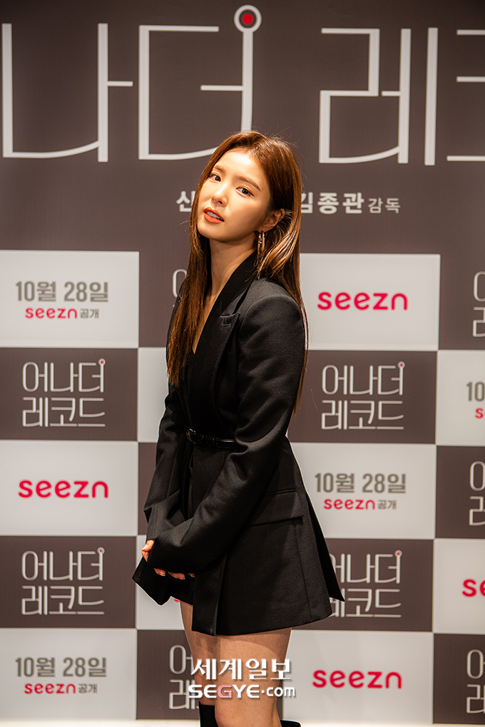 배우 신세경이 지난달 22일 오전 온라인으로 진행된 영화 '어나더 레코드' 제작보고회에서 포즈를 취하고 있다. KT Seezn 제공