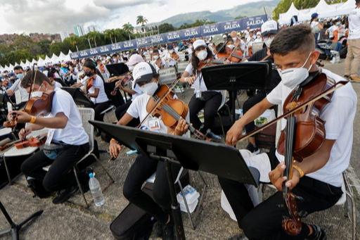 베네수엘라 정부는 지난 13일 기록 경신을 위해 자국에서 도전한 오케스트라 연주가 기네스북 신기록으로 공식 인정받았다고 20일 밝혔다. 당시 12∼77세 연주자들 1만2000명이 수도 카라카스에서 한자리에서 모여 차이콥스키의 '슬라브 행진곡'을 연주했는데, 260명 심사관들은 이중 8573명이 유효하게 참여했다고 판정했다. 이는 종전 기네스 기록이던 2019년 러시아에서의 8097명 동시 연주보다 많은 인원이다.