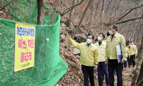 시는 폐사체 발견 지점 부근 800m에 그물망과 경광등, 기피제 등을 설치해 야생동물 접근을 막고 있다.