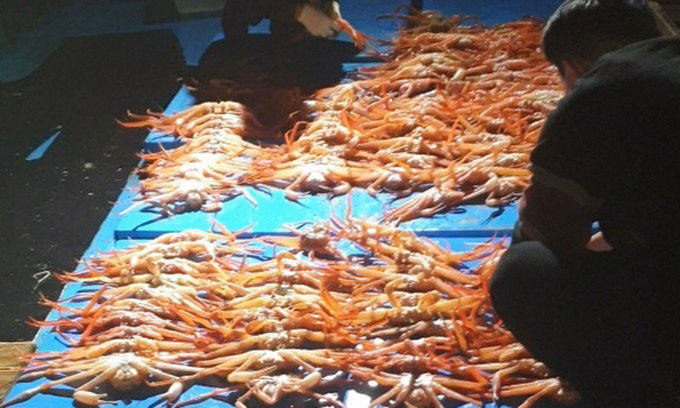 포항해경 관계자가 불법으로 잡은 대게를 살펴보고 있다.포항해양경찰서 제공