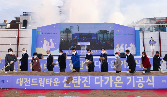 대전 청년·신혼부부를 위한 대전드림타운 기공식 행사장에서 현장 관계자가 흉기로 자해를 하는 일이 발생하면서 착공이 2주간 연기됐다.