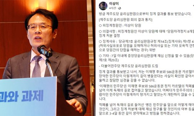 국민의힘 김병민 중앙선대위 대변인은 30일 논평을 통해 “이 후보의 기본소득 공약을 비판한 교수에 대해 민주당이 당원자격정지 8개월의 징계 처분을 내렸다. 이제 민주당에서는 ‘명비어천가’를 부르는 일만이 허용된다는 엄포를 내린 것에 다름없다”고 비판했다. 제주대 이상이 교수는 전날 자신의 페이스북에 이 후보에 대한 허위사실 유포, 당원 간 단합 저해 등 이유로 당원자격정지 8개월이라는 징계 처분을 받은 사실을 공개했다. 이 교수는 대선 경선 당시 이낙연 전 대표의 복지국가비전위원회 위원장을 맡았다.