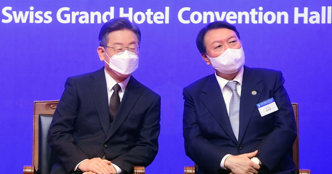 이재명 더불어민주당 대선 후보와 윤석열 국민의힘 대선 후보가 오차범위 내 접전을 벌인다는 여론조사 결과가 6일 나왔다.