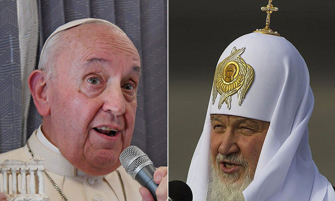 6일(현지시간) 뉴욕타임스(NYT) 등에 따르면 교황은 키프로스·그리스 순방을 마치고 바티칸으로 돌아오는 전용기에서 기자회견을 열고 “다음 주중 바티칸에서 러시아 정교회 관계자와 만나 키릴 총대주교와의 만남을 논의할 예정”이라며 “만날 장소가 협의되지 않으면 모스크바에 갈 준비도 돼 있다”고 말했다. 이어 “형제와 이야기하는 데 절차는 필요 없다”고 덧붙였다. 교황의 모스크바 방문이 성사되면 로마가톨릭과 동방정교회가 갈라진 1054년 ‘대분열’ 이후 1000여년 만에 처음으로 가톨릭 수장이 러시아 땅을 밟는 것이 된다.