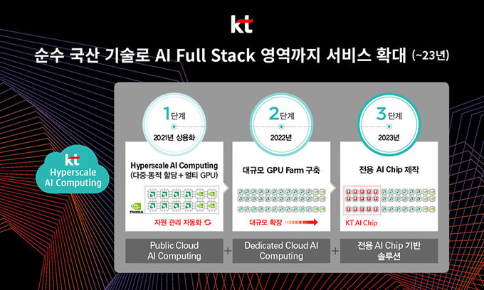 KT와 모레는 이번 상품 출시에 이어 내년에는 초대규모 GPU 팜을 구축할 예정이다. 2023년에는 전용 AI 반도체 칩을 제작해 GPU 기술 국산화를 추진한다.