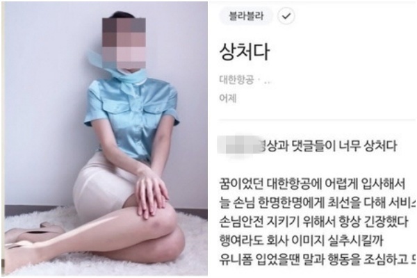 그는 “10년간 자부심을 가지고 내 회사 유니폼을 입고 열심히 일해온 죄밖에 없다”면서 “앞으로 비행기 탈 때마다 유니폼 입을 때마다 나를 어떤 시선을 볼지 저런 댓글을 다는 사람들이 속으로 무슨 상상을 하고 있을지 두렵고 슬프다”고 했다.
