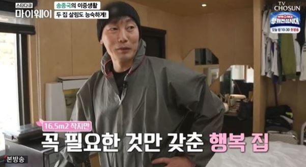 이어 자신이 머무는 5평 숙소를 공개한 송종국은 “5평의 행복이다. 여기서 보면 저수지, 산, 도심까지 다 보인다. 저 멀리서 들어오는 차도 다 보인다. 숙소가 거의 경비실이나 마찬가지다”며 “제가 생각하기에 아무 문제가 없다. 있을 거 다 있지 않나”라고 덧붙였다.