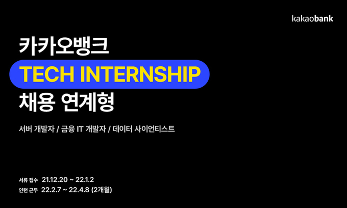 카카오뱅크가 처음으로 채용전환형 개발자 인턴 프로그램(Tech Internship)을 운영한다고 20일 밝혔다.