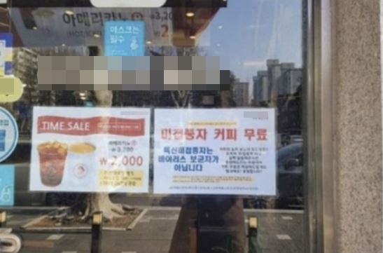 부천의 한 카페 점주가 신종 코로나바이러스 감염증(코로나19) 백신 미접종자에게 커피를 무료로 제공하겠다는 캠페인을 벌이고 있다.