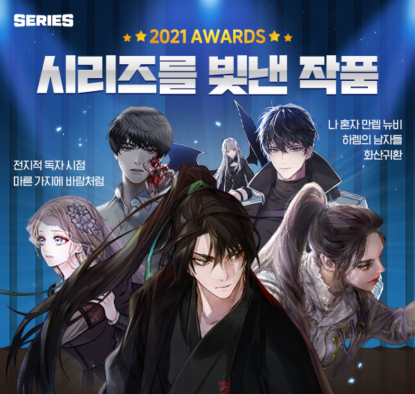 네이버 시리즈가 올 한 해를 빛낸 ‘시리즈 2021년 어워드: 시리즈를 빛낸 작품들’(이하 시리즈 2021년 어워드)의 선정작을 23일 공개했다. 해당 선정작은 판타지·현대판타지·무협, 로맨스·로맨스판타지 장르의 웹소설 중 총 결제 금액 기준의 전체 Top(톱) 10, 신작 Top 10을 산정한 결과다.