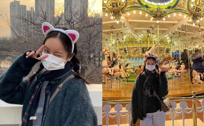 공개된 사진에는 놀이공원에서 다양한 포즈를 취하고 있는 혜리의 모습이 담겼다. 특히 혜리는 같은 작품에 함께 출연중인 강미나와 놀이공원을 찾아 머리띠를 한 채 크리스마스 분위기를 즐겼다.