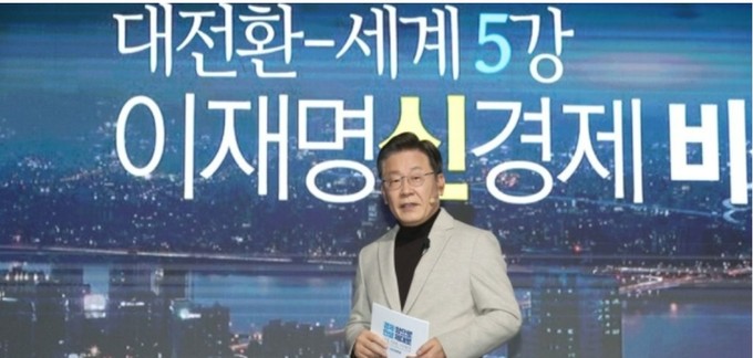 이 후보는 이날 오전 국회에서 '이재명 신경제 비전' 선포식을 하고 "지금 우리는 에너지 전환, 디지털 전환, 그리고 최근에는 코로나 팬데믹까지 동시에 맞으면서 역사적인 대전환의 시대를 살고 있다"며 "바로 지금이 대전환의 골든타임"이라고 밝혔다.