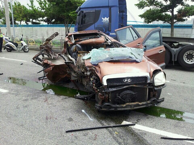 앞서 지난 2016년 8월 2일 낮 12시25분쯤 부산 남구 감만동 한 주유소 앞에서 일가족이 탑승한 싼타페가 속도를 줄이지 않은 채 내리막길을 달리다 갓길에 주차해 있던 트레일러를 그대로 들이받았다.