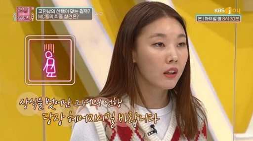 한혜진도 “당신의 여자친구는 악의 축이다. 본인은 인격적 말살을 당하고 있다. 선 봐서 결혼할 남자도 인격적 말살을 당하는 거다. 빨리 빠져나와라. 비정상적이고 비도덕적이고 비상식적인 여자친구를 왜 만나냐. 헤어져라”라고 일침을 가했다.