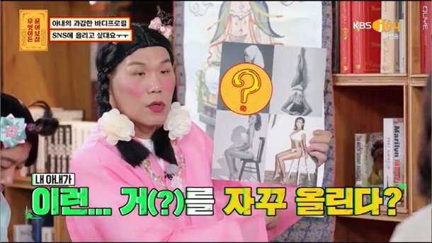 그러나 아내는 “제가 얼마나 힘들게 만든 몸인데... 제 예술 작품이라 생각한다. 그래서 노출해서 자랑하고 싶다”고 항변했다. 서장훈은 “반대로 남편이 몸도 안만든 상태로 속옷만 입고 사진을 찍어 올린다 생각해봐라. 그걸 지인들이 보고 남편 몸 얘기하면서 평가하면 어떨 것 같냐. 그건 괜찮냐”고 질문 했지만 아내는 “기분은 안좋지만 몸을 만든 상태면 뭐라 안할 것 같다. 멋있다 생각한다”며 웃었다.