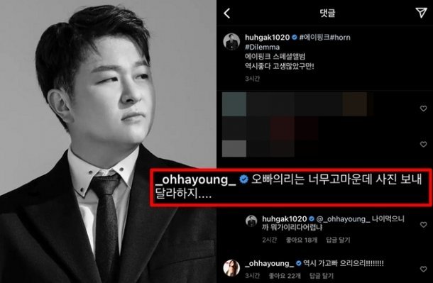 가수 허각이 에이핑크의 컴백을 홍보한 가운데 에이핑크 멤버 오하영에게 핀잔을 들었다.