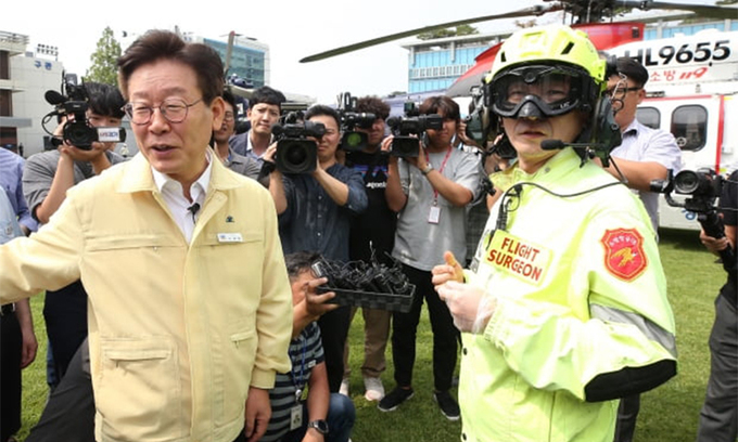 헬기 운항에 따른 각종 민원 및 미흡했던 지원으로 힘들었던 이 교수에게 미안함도 표했다. 이 후보는 “좀 더 멀리 갈 수 있는 중대형 헬기를 도입하다 보니 아주대병원 중증외상센터 헬기 착륙장 주변 소음 민원이 생겼고, 전국 외상환자가 이국종 교수가 있는 아주대병원으로 몰리며 의료진의 부담이 점점 커졌다”고 했다. 그는 “이를 해결할 공공의 지원은 한없이 더디고 모자라기만 했다”며 “중형 헬기로 기종 변경, 헬기 탑승, 의료진 인건비 지원 추진 등 도에서 최대한 뒷받침하기 위해 노력했지만 충분치 못했다”고 했다.