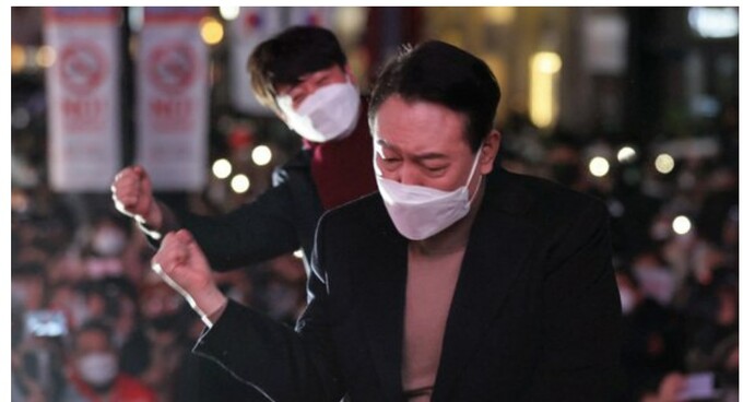 빡빡한 일정으로 목이 쉴대로 쉰 이 대표는 관문시장 앞 윤석열 후보 유세차량에 올라 한껏 목소리를 높였다.