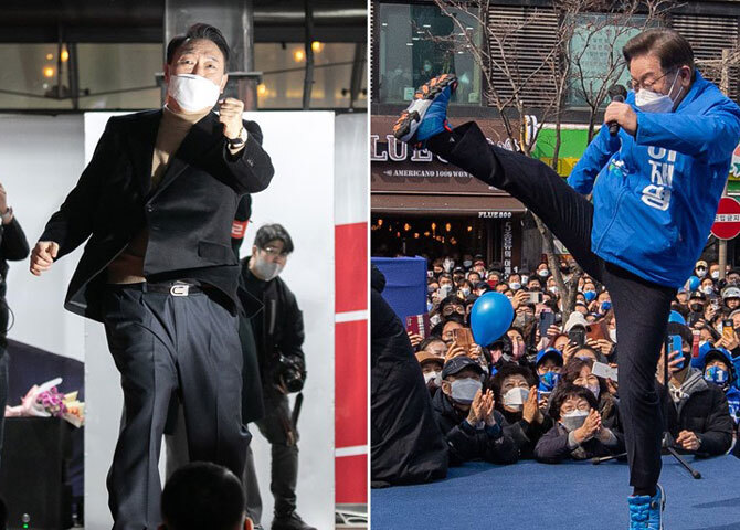 공식 선거운동 첫 주말인 19일 더불어민주당 이재명 후보와 국민의힘 윤석열 후보의 세리머니 대결에도 시선이 집중됐다.