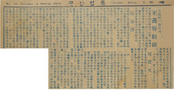 독립신문은 1919년 8월21일 창간된 상하이 임시정부 기관지로, 임시정부 활동상과 독립운동 동향 등을 다뤘다. 1926년 11월30일 발행된 207호까지 전하며, 대한민국역사박물관과 연세대 소장품이 각각 국가등록문화재로 등록돼 있다.