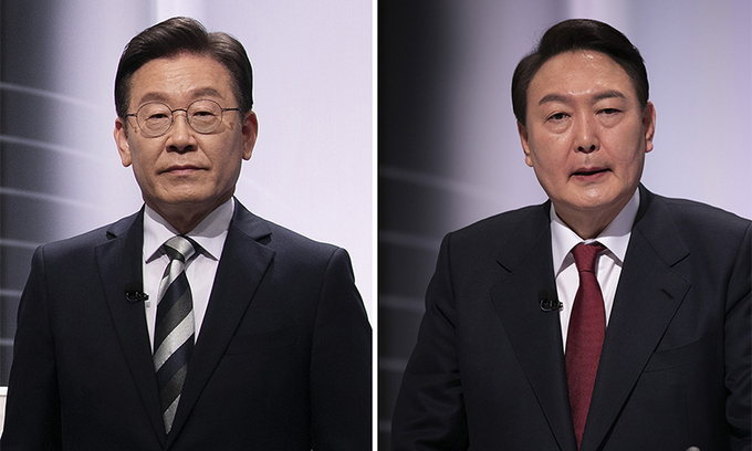 러시아의 우크라이나 침공으로 한반도 안보 문제가 주요 쟁점으로 떠오른 가운데 더불어민주당 이재명 대선 후보와 국민의힘 윤석열 대선 후보가 25일 상반된 안보관을 표출했다.