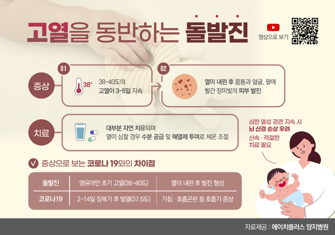 에이치플러스 양지병원 양무열 소아청소년과 전문의는 “돌발진과 코로나19 감염과의 차이점은 영유아 돌발진은 초기 고열과 열이 내린 후 발진이