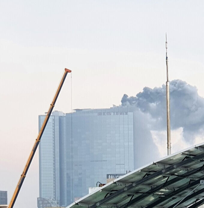 도심지 내 최고층 건물 주변이 연기에 휩싸이면서 119 신고가 폭주하고 투숙객이 대피했다.