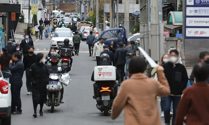 자영업자에게도 도움이 되지 않을 것이란 평가다. 자영업자들은 시간 제한은 그대로 두고 인원만 찔끔 늘리는 건 소용이 없다고 반발하고 있다. 서울의 한 대학가에서 호프집을 운영하는 김모(41)씨는 “오후 10시만 돼도 손님이 끊기는데, 가게 문 닫고 나가면 사람들이 술을 사다 공원에서 마시고 있다. 자영업자들만 죽어나는 것 같다”며 한숨을 쉬었다. 실제로 지난주 신용카드 매출액은 8조243억원으로, 전주 대비 6.3%, 2주 전 대비 10.2% 감소했다. 유흥시설 매출액만 2주 새 29.9% 늘었다. 확진자가 폭증하면서 지난주 이동량은 직전 주보다 오히려 1.3% 감소했다.