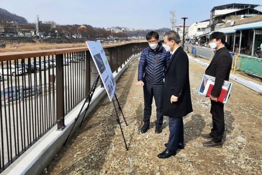 여행자 거리는 가설점포를 철거한 뒤 천변 주차장 방향으로 내민보를 설치해 안전하고 넓은 보행 공간을 확보하는 방식을 추진한다. 현재 전신·통신선로 지중화 공사를 마친 상태이며, 다음 달까지 보도와 차도 포장을 마무리해 완공할 계획이다.