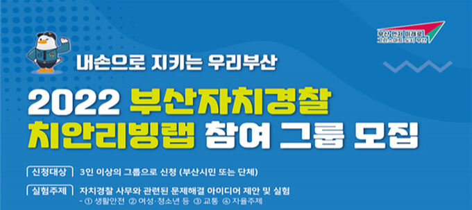 28일 부산시에 따르면 시민이 체감할 수 있는 시민 중심의 맞춤형 치안모델 발굴을 위해 다음 달 15일까지 치안리빙랩 참가자를 모집한다.