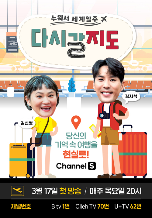 채널S ‘다시 갈 지도’(포스터)는 팬데믹(세계적 대유행) 이후 처음으로 해외여행을 전면에 내세웠다. 여행 예능의 대표 프로그램이었던 KBS ‘배틀트립’ 제작진의 신작이다. 연출을 맡은 김수현 PD는 지난 24일 기자간담회에서 “누워서 세계 일주를 한다는 콘셉트로 방구석에서 여행을 할 수 있는 새로운 개념의 코로나 시대 맞춤형 여행 프로그램”이라고 소개했다.