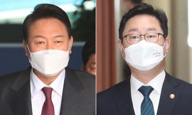 박 장관은 윤 당선인이 대선에서 승리한 직후인 지난달 11일에는 윤 당선인에 대해 “왜 소회가 없겠나. (사법연수원 23기) 동기인데 축하의 말씀을 드린다”면서도 공약과 관련한 구체적인 입장 표명은 유보했었다. 그러나 이후 출근길에 취재진과 만난 자리에서나 약식 기자간담회 등에서 윤 당선인의 사법 공약에 강한 반대 입장을 밝혔다.