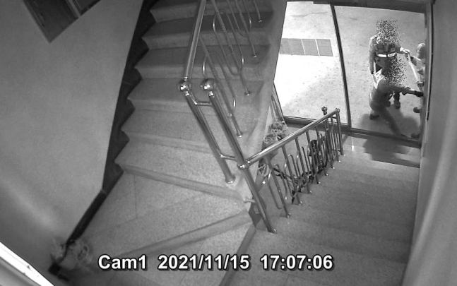 빌라 건물을 나오면서 열린 1층 자동 현관문이 다시 닫히기까지는 시간이 있었는데도 두 경찰관이 한동안 들어가지 않은 듯한 모습이 포착된 장면이다.