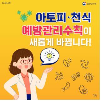 한편 질병청은 오는 8일 오후 2시 질병청 유튜브 ‘아프지마TV’를 통해 비대면으로 아토피·천식 예방관리수칙 개정 선포식을 개최한다. 이는 개정된 아토피·천식 예방관리수칙을 국민에게 알리기 위해서다.