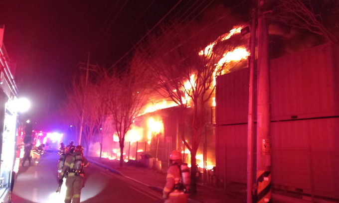 소방당국은 인근 주택에서 난 불이 공장으로 옮겨 붙은 것으로 추정하고 있다.