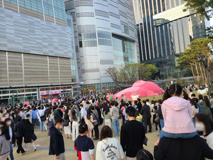 가족 단위로 온 방문객도 눈에 띄었다. 벨리곰이 누워있다며 울음을 터뜨리는 아이를 어르고 달래는 부모에 지나가는 이들이 웃음을 짓는 모습도 포착됐다.