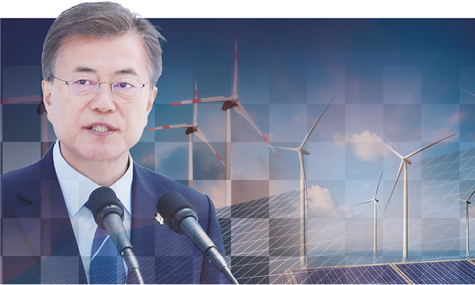 문재인정부는 몇 차례에 걸쳐 재생에너지 육성 계획을 내놨지만 실제 발전량은 집권 첫해 4.4%(연료전지·수소에너지 등이 포함된 신재생에너지 기준)이던 데서 4년 만인 지난해 6.8%로 소폭 상승했을 뿐이다. 지난해 정부가 2030년 온실가스감축목표(NDC)를 발표하며 신재생에너지 비중 목표를 30%까지 끌어올린 걸 고려하면 그 성과가 더 미진하게 보일 수밖에 없다.
